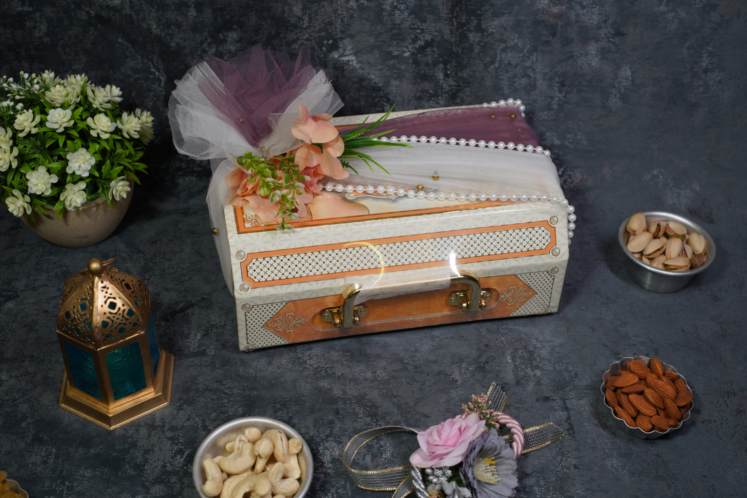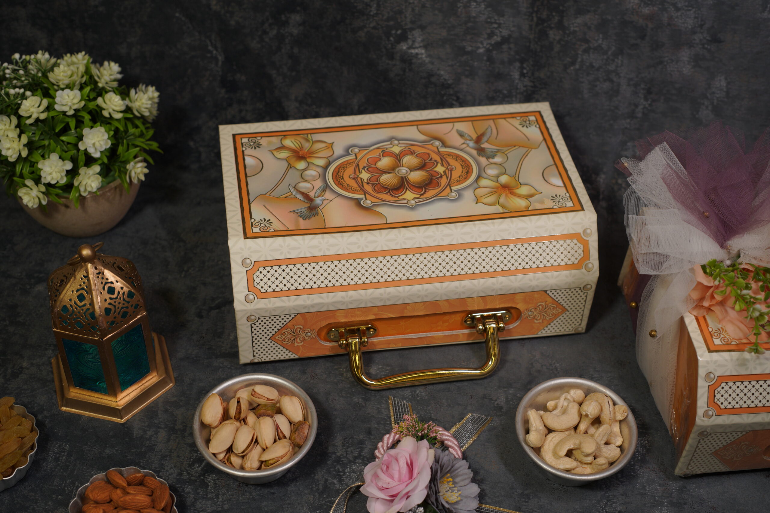 Luxury dry fruit box with Kaju, Badam, Pista & Kismis elegant and rich.
